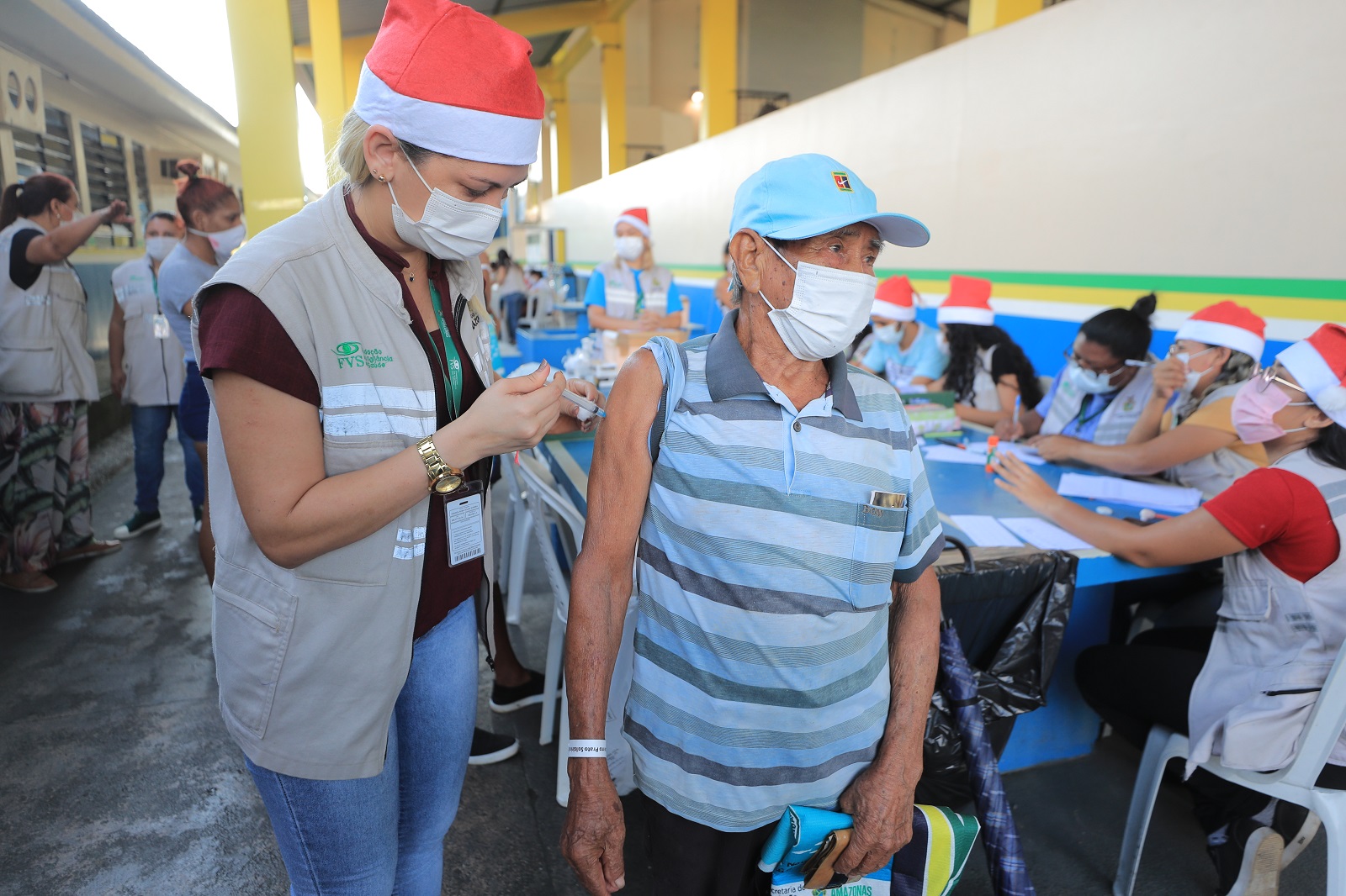 Como estratégia para ampliar a cobertura vacinal contra a Covid-19 em Manaus, o Governo do Amazonas levou equipes de vacinadores para o Parque São Pedro e para o conjunto Cidadão 10, no Tarumã, zona oeste da capital; que receberam ações do programa Peixe no Prato, nesta quarta-feira (22/12). Ao todo, 549 pessoas foram vacinadas em quatro horas, no Colégio Militar da Polícia Militar (CMPM) III – Escola Estadual Waldocke Fricke de Lyra; e na Escola Estadual Karla Patrícia Barros de Azevedo.