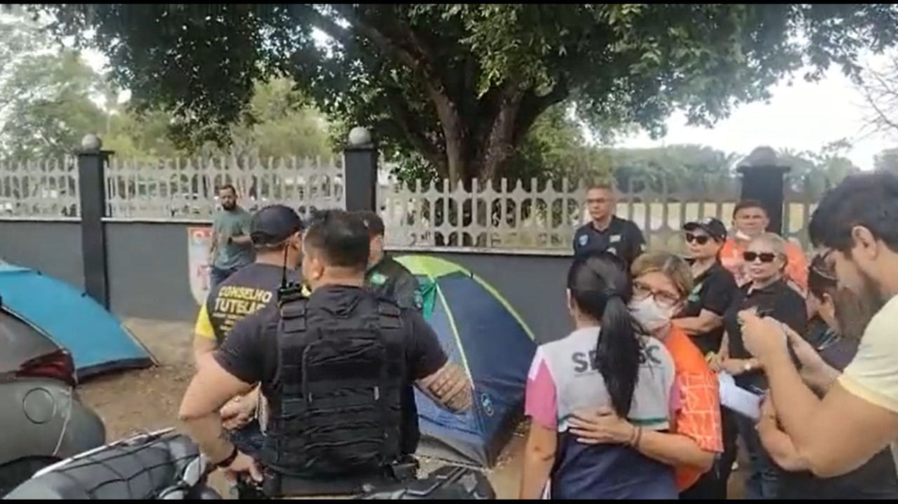 Agentes do IMMU estão no local e acompanham a remoção dos carros para uma outra área que pertence ao CMA. Contudo, as barracas montadas nas calçadas seguem no mesmo lugar, assim como os manifestantes.
