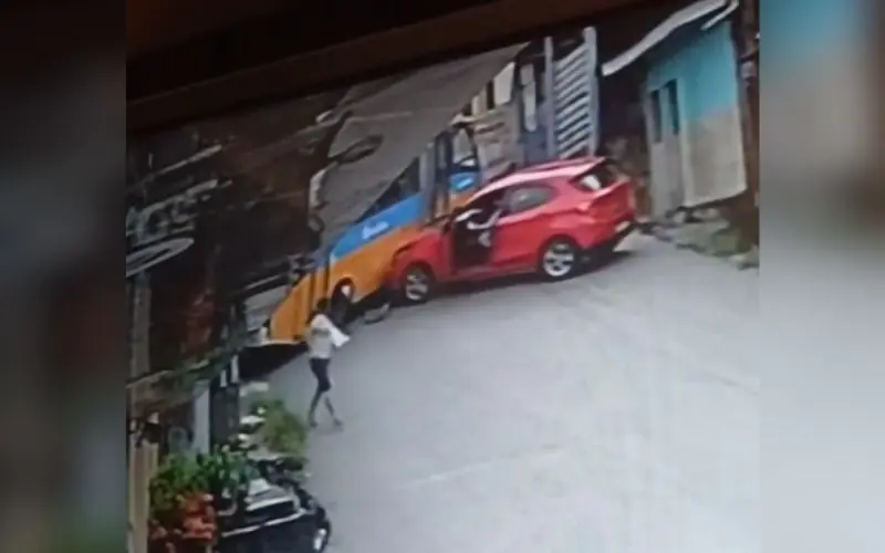 As gravações mostram o veículo seguindo pela via em condições normais, com um carro e uma motocicleta logo atrás. Em seguida, o micro-ônibus apresentou falha nos freios e passou a se deslocar de ré, colidindo com o automóvel. A motocicleta conseguiu desviar e atravessar para o outro lado da rua, evitando o impacto. O motorista do carro deixou o veículo instantes antes da colisão.