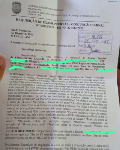 Um motorista de aplicativo estuprou uma adolescente de 13 anos na tarde desse domingo (26), no Conjunto Braga Mendes, zona norte de Manaus.