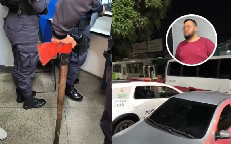 Revoltado, o motorista do executivo, identificado apenas como Gabriel, bloqueou o coletivo no semáforo e deu duas machadadas no vidro da cabine do condutor.