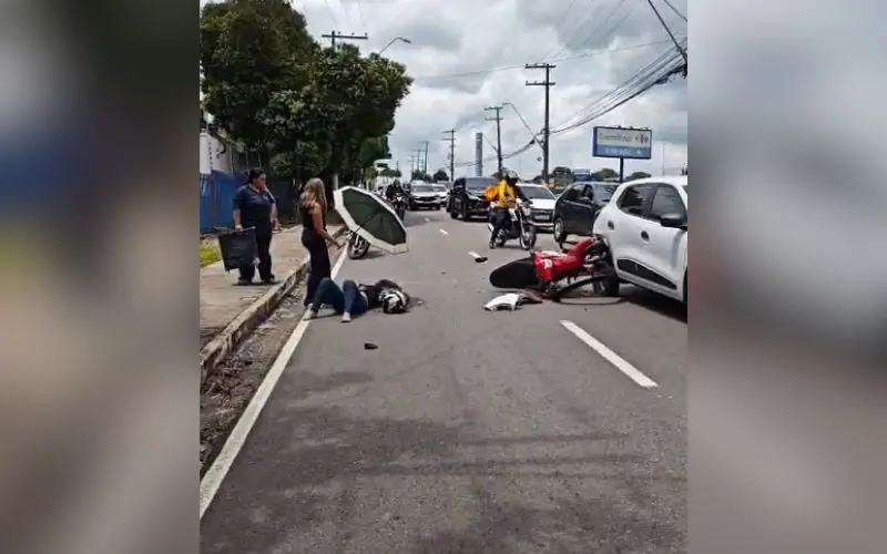 A passageira de uma motocicleta sofreu um grave acidente após colidir contra um carro na manhã desta sexta-feira (30), na Av. Pedro Teixeira, bairro Dom Pedro, zona Centro-oeste de Manaus.