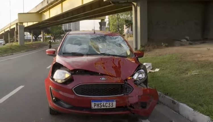 Os dois trafegavam em uma motocicleta e ao se aproximarem do viaduto, acabaram invadindo a contramão e colidiram de frente com um carro modelo Ford Fiesta.