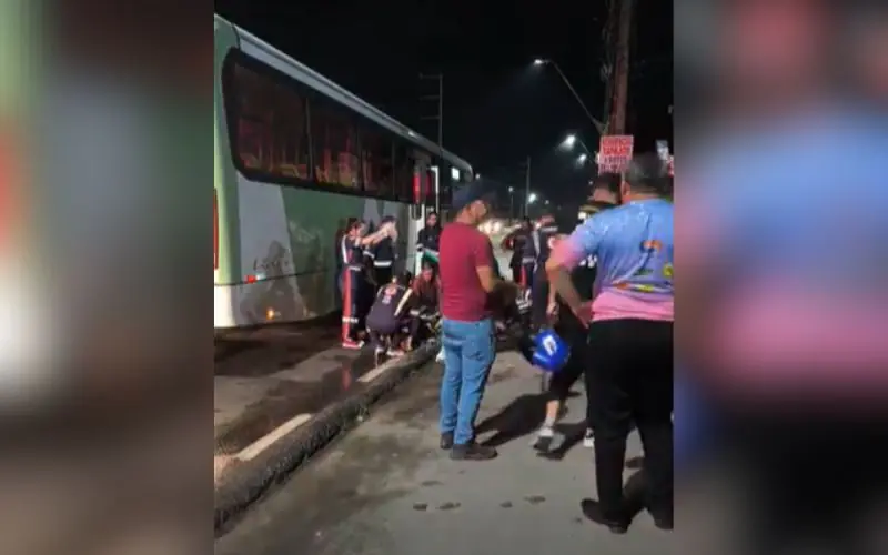 Um ônibus da linha 330 esmagou a perna de uma mulher que estava na garupa de uma motocicleta, na Avenida Torquato Tapajós, zona norte de Manaus. O acidente aconteceu na noite desta quarta-feira (15), por volta das 19h.