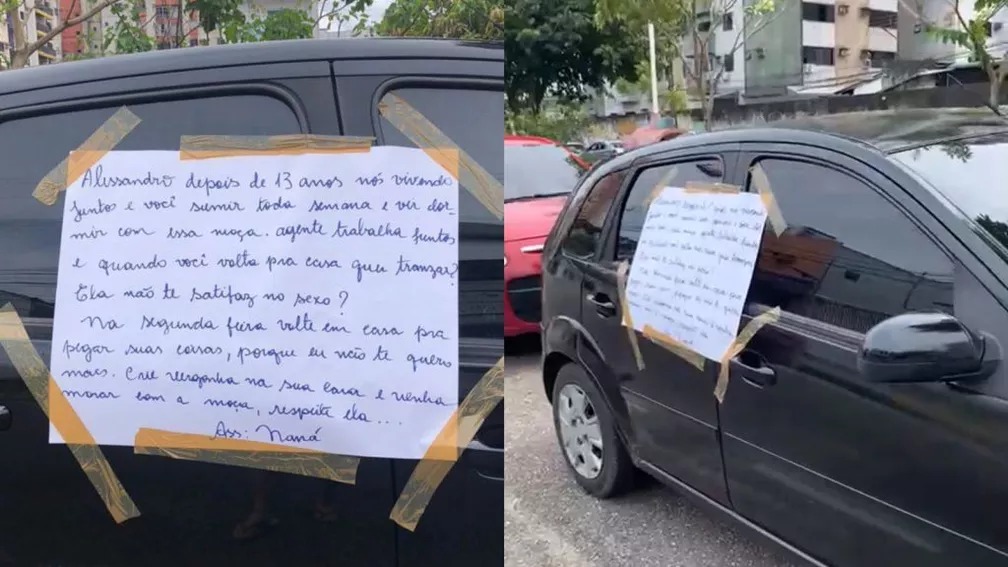 Mulher traída deixa bilhete no carro do marido: ‘crie vergonha na cara’