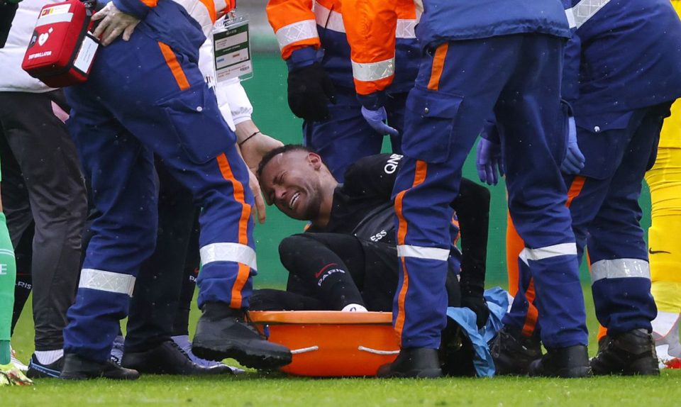 O atacante Neymar, do PSG (França), desfalcará a equipe por um período de seis a oito semanas por causa de uma entorse no tornozelo sofrida durante a vitória de virada de 3 a 1 sobre o Saint-Étienne pelo Campeonato Francês no último domingo (28), informou a equipe do brasileiro nesta segunda-feira (29).