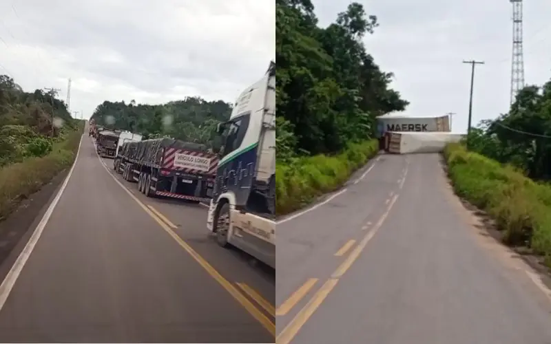 O tombamento de duas carretas interditou completamente a rodovia BR-174, que liga Manaus a Boa Vista, na manhã desta quarta-feira (1º). O acidente ocorreu na ladeira conhecida como “Maria Ceará”, trecho considerado crítico por conta da inclinação e do histórico frequente de ocorrências com veículos pesados.