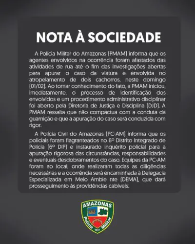 Em nota, a Polícia Militar do Amazonas informou que identificou os agentes e abriu procedimento disciplinar pela Diretoria de Justiça e Disciplina (DJD). A corporação afirmou que não compactua com a conduta registrada em vídeo e garantiu rigor na apuração.