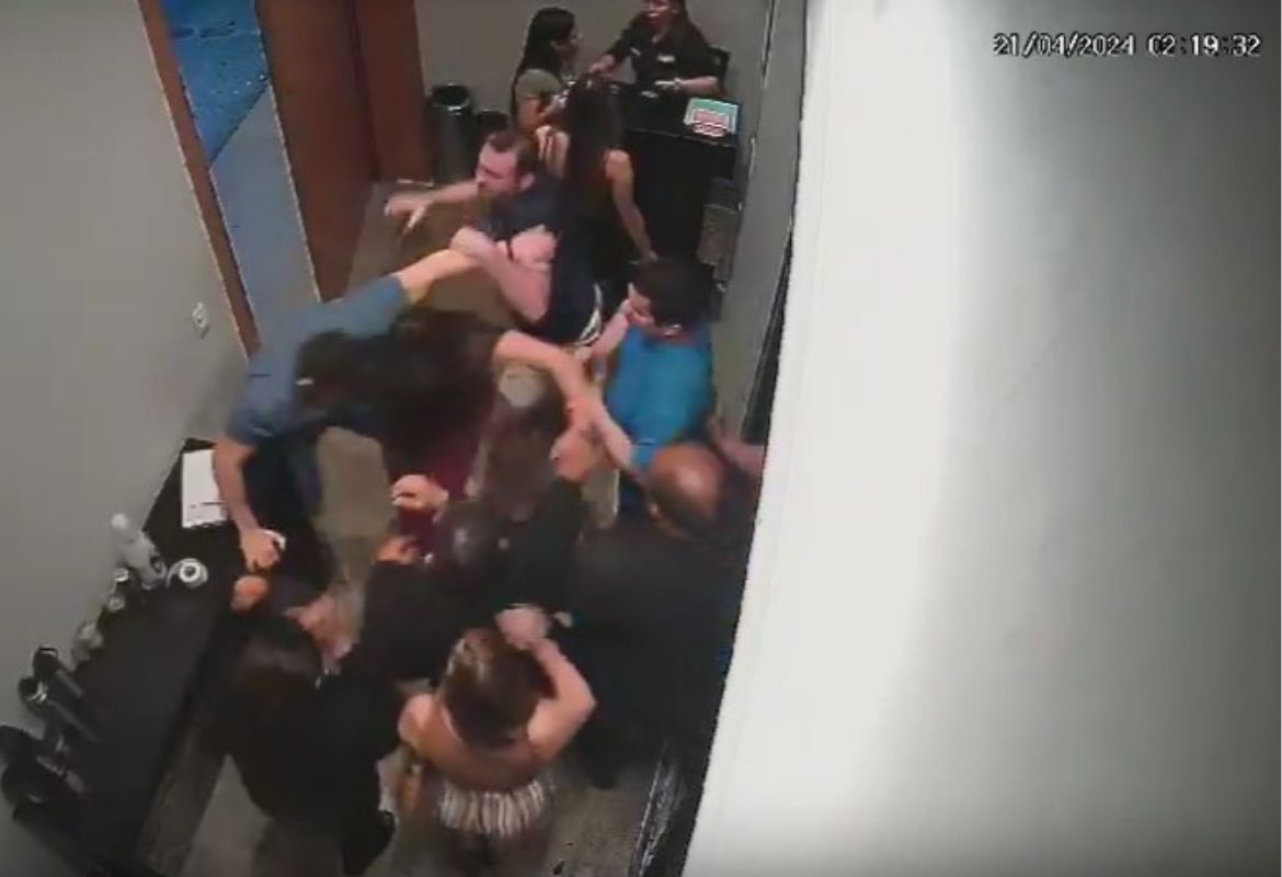 Nas imagens, é possível ver que um homem esbarra na companheira do PM. Ao tentar tirar satisfação, o policial e o homem iniciam uma briga física. Durante a troca de socos, o PM atira e o disparo acaba atingindo uma funcionária do local. Em seguida, o segundo tiro atingiu, de raspão, o homem envolvido na confusão inicial.