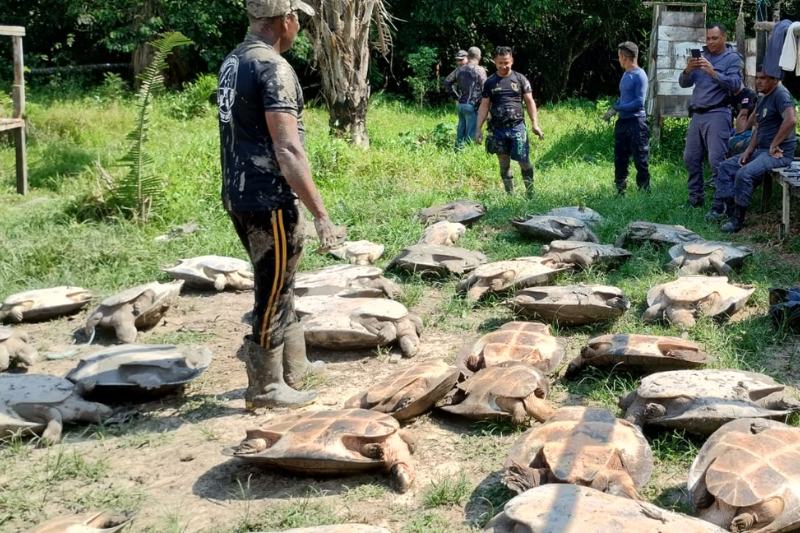 “Apesar das dificuldades de acesso ao rio e à mata, conseguimos localizar vários currais com os animais. Muitos currais continham em média 20 tartarugas, pesando mais de 50 quilos cada”, explicou o delegado.