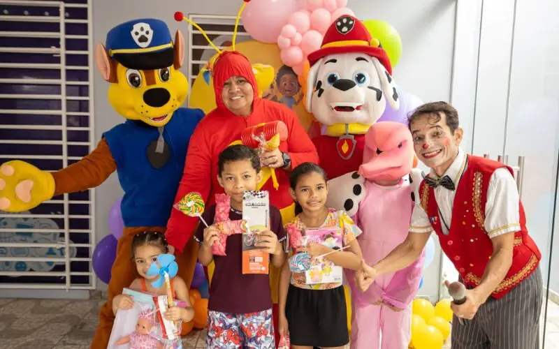 A festa ocorreu pela manhã e à tarde, levando alegria à comunidade. Brinquedos, picolés, bombons, refrigerantes e bolo foram distribuídos às crianças. Apresentações da Patrulha Canina, Galinha Pintadinha e Stick encantaram o público e tornaram o dia inesquecível.
