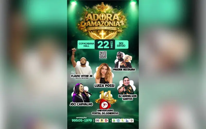 O Portal do Generoso prepara uma grande celebração para marcar seus 14 anos de história, credibilidade e compromisso com a informação. O evento “Adora Amazônia” acontece no próximo dia 22 de maio, a partir das 18h30, no Tarumã Fest, prometendo uma noite especial de fé, música e celebração.