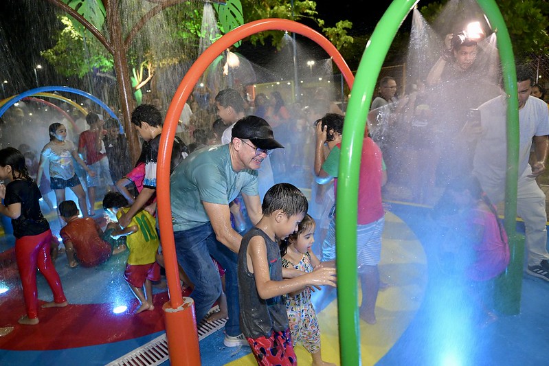 Prefeito David Almeida entrega a primeira praça molhada de Manaus na zona Sul