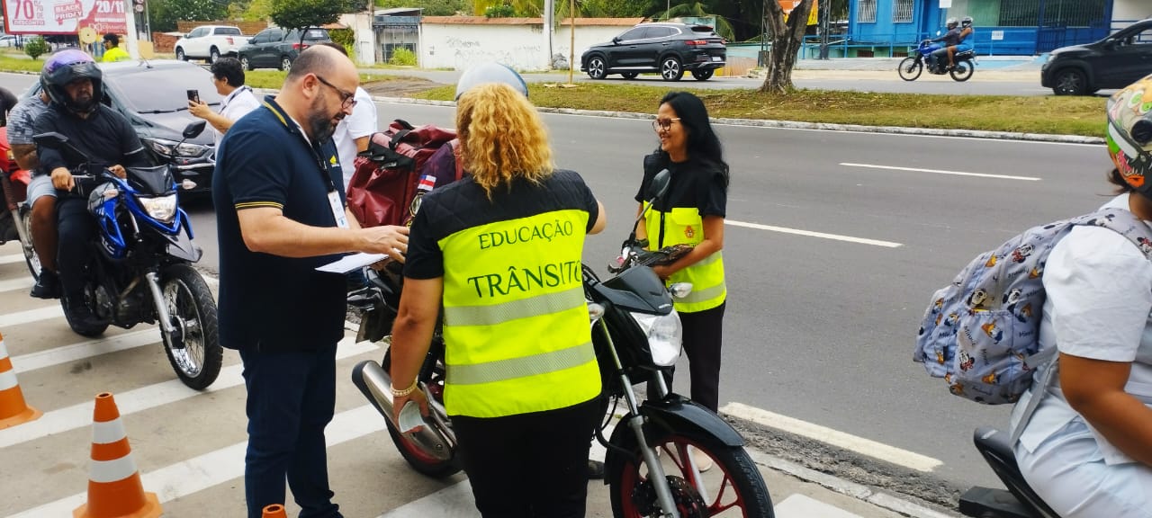 Em uma iniciativa para promover a segurança viária, a Prefeitura de Manaus, por meio do Instituto Municipal de Mobilidade Urbana (IMMU), implementou uma atividade com abordagens educativas aos motociclistas, enfatizando a importância de escolhas responsáveis no trânsito. A ação, estruturada em um formato dinâmico de “pit stop”, foi intitulada “Trânsito Seguro Escolhe a Vida”, ressaltando que cada atitude no trânsito pode ser decisiva para a preservação da vida.