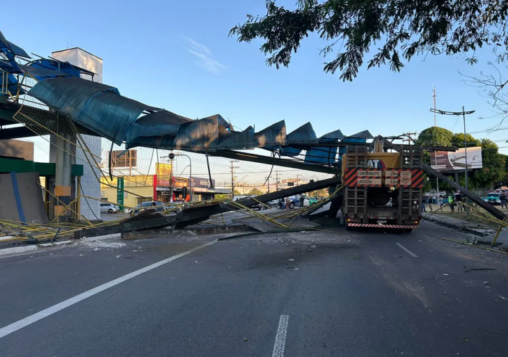 A Secretaria Municipal de Infraestrutura (Seminf) executou, após atuação da Perícia Criminal, o serviço de limpeza e retirada dos escombros para a liberação do tráfego na via. O corpo técnico, de forma paralela, realizou a vistoria e análise da estrutura da outra metade da passarela.