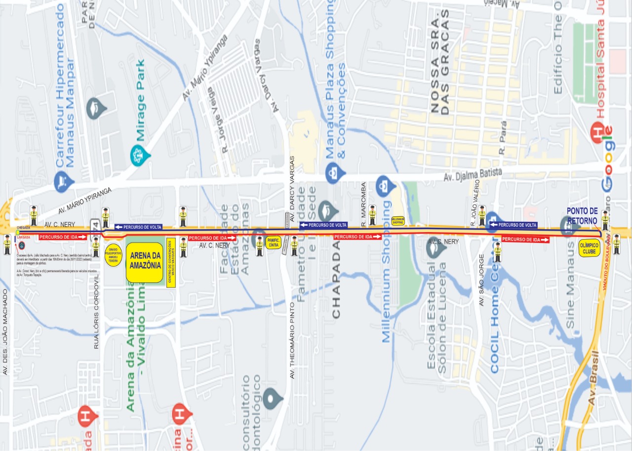 O Instituto Municipal de Mobilidade Urbana (IMMU) ressalta que, no sábado, os dois sentidos da avenida Constantino Nery permanecerão liberados para os veículos oriundos da avenida Torquato Tapajós.