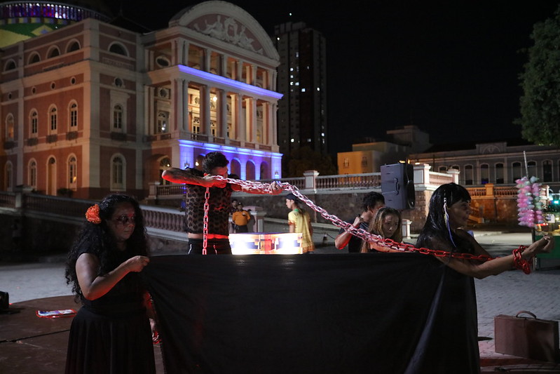 A obra, que retratou histórias reais de indígenas que são explorados, especialmente mulheres, também foi apresentada na língua nativa Tukano. Para Jamille Pinheiro Dias, de 40 anos, que é professora da Universidade de Londres, a arte exerce um papel importante na conscientização sobre o tema.