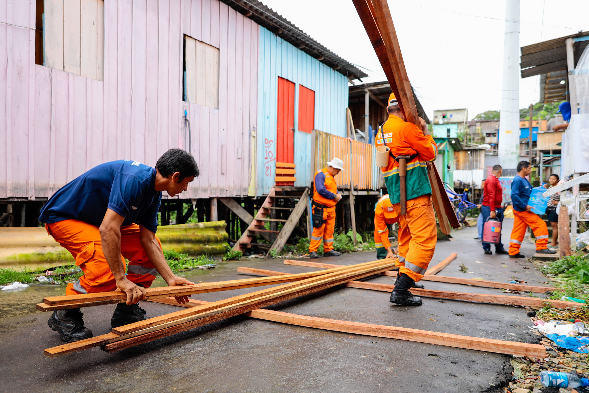 A Prefeitura de Manaus, por meio da Secretaria Municipal de Segurança Pública e Defesa Social (Semseg), iniciou, nesta segunda-feira, 30/5, a construção das pontes provisórias na rua Barão de São Domingo, localizada no centro de Manaus, um dos principais acessos para o escoamento da produção agrícola das feiras Manaus Moderna e Banana.