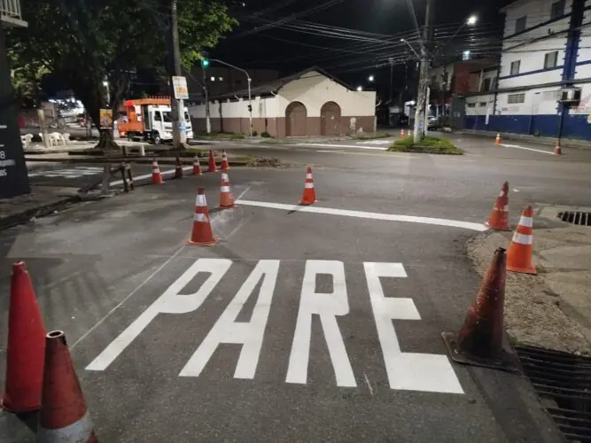 Foram pintadas faixas de pedestres, linhas de retenção, setas indicativas e marcações de “Pare”. As ruas Aires da Cunha e Ovídio Gomes Monteiro, na região Oeste, receberam melhorias para facilitar a circulação e aumentar a visibilidade.