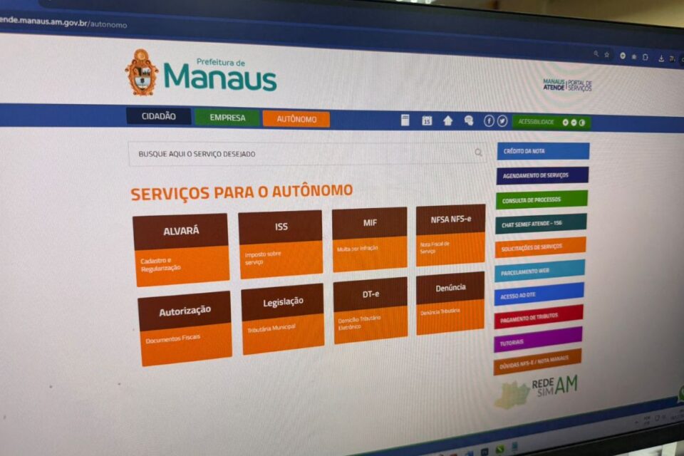 Os profissionais autônomos e das sociedades uniprofissionais já podem consultar e imprimir as notificações e guias para o pagamento do Imposto Sobre Serviços (ISS) Fixo referente ao exercício de 2025. O acesso pode ser feito pelo portal de serviços Manaus Atende (manausatende.manaus.am.gov.br), da Prefeitura de Manaus.