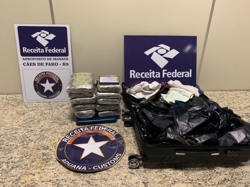 A Receita Federal apreendeu durante operação nesta quinta-feira (15) 11 kg de maconha tipo skunk no Aeroporto Internacional Eduardo Gomes. Na semana passada a mesma equipe apreendeu 26,7 kg da mesma droga em malas despachadas para São Paulo.