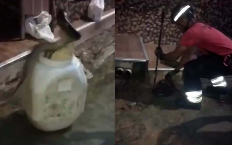 Em seguida, os militares chegaram ao local e iniciaram a captura utilizando equipamentos adequados de contenção, garantindo a segurança tanto da equipe quanto dos moradores. Durante a ação, um vídeo registrou o momento em que colocaram o animal em um recipiente apropriado, próximo ao portão da casa.