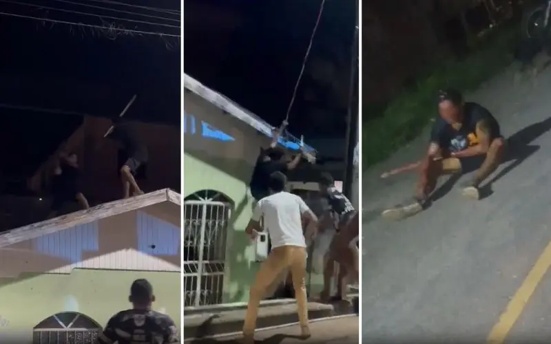 Além disso, testemunhas relataram que o homem tentou escapar pulando um muro e correndo sobre o telhado de uma residência. O grupo conseguiu alcançá-lo, derrubou-o e iniciou uma série de agressões com chutes, socos e pedaços de madeira.