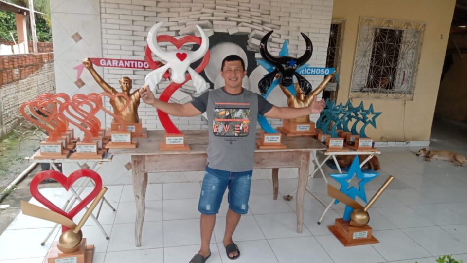 Nos troféus da Batucada e da Marujada, os símbolos dos bois voltam a ser o elemento principal. “Todo marujeiro e todo batuqueiro tem orgulho de defender suas cores e defender o seu símbolo. No Caprichoso, a estrela, no Garantido, o coração. Então, os troféus vêm com o símbolo dos bois, nas cores dos bois e com uma baqueta”, define.