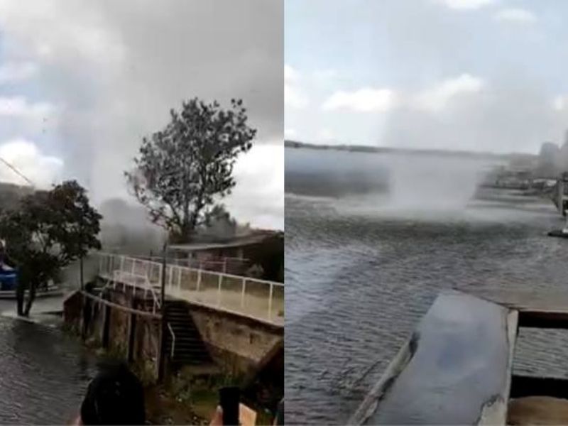 O fenômeno foi gravado por moradores e compartilhado nas redes sociais. A tromba d’água se formou próximo da orla da cidade e causou muita ventania.