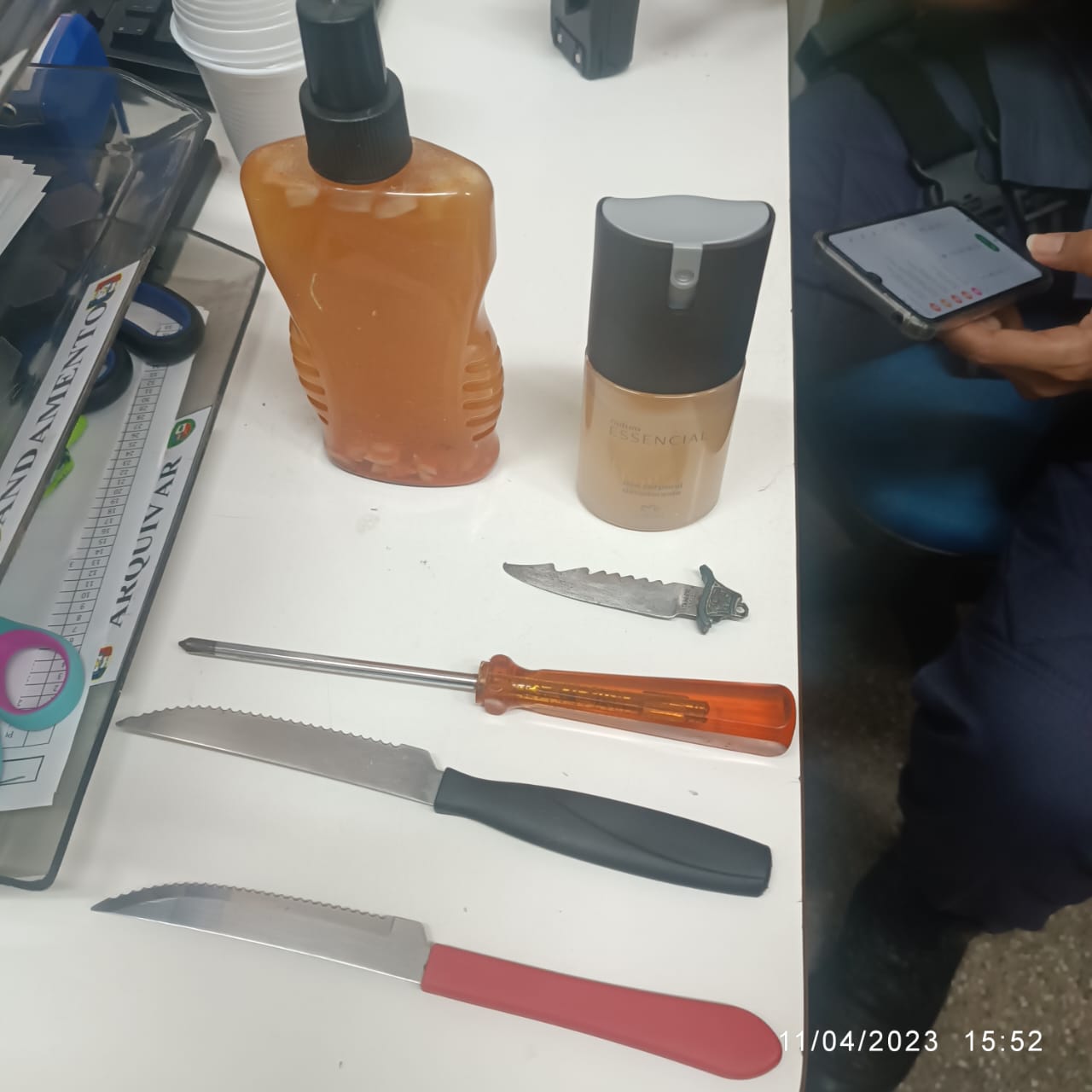 Durante uma revista no Colégio da Polícia Militar Áurea Pinheiro Braga (CMPM 4), localizado no bairro Gilberto Mestrinho, zona Leste, alguns alunos foram apreendidos com facas, canivetes, simulacros de pistola, tesouras e spray de pimenta dentro de suas mochilas.