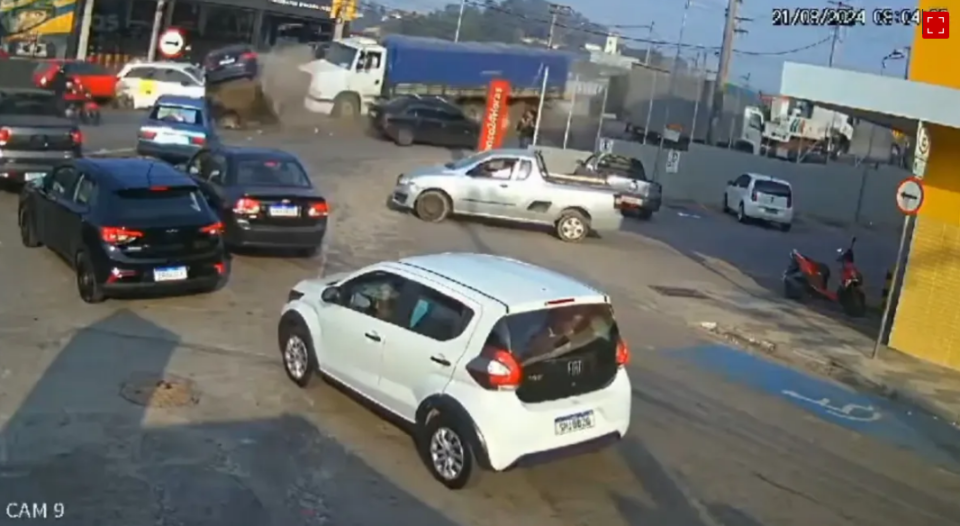 O caminhão desgovernado atingiu quatro carros e uma motocicleta. Segundo a Polícia Militar, o caminhão estava a uma velocidade de aproximadamente 90 km/h quando atingiu os outros veículos. Com o impacto da batida, um dos carros capotou.