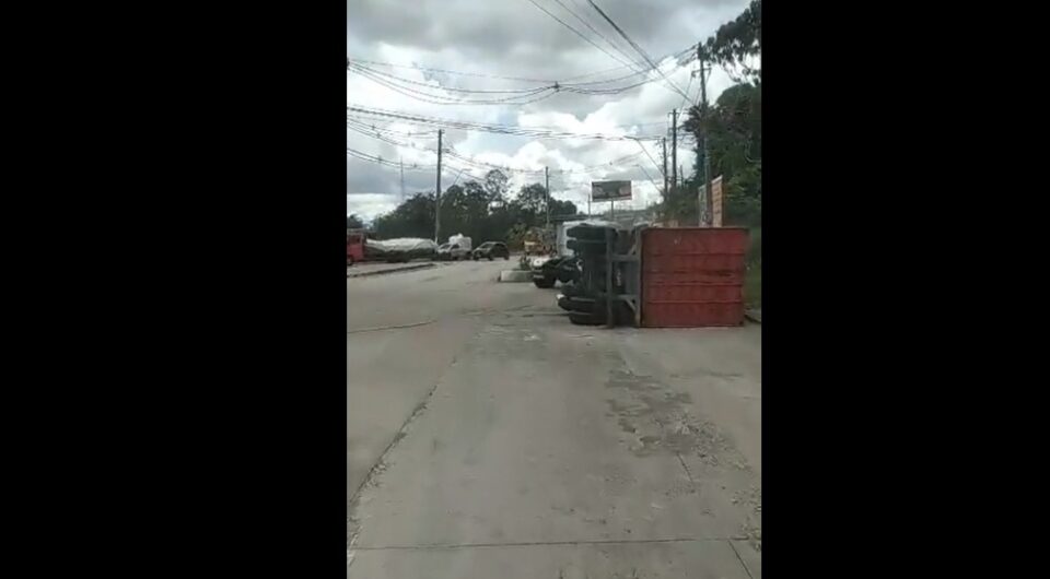 Uma carreta tombou na tarde desta quarta-feira (29), na avenida Buriti, no bairro Distrito Industrial, Zona Sul.