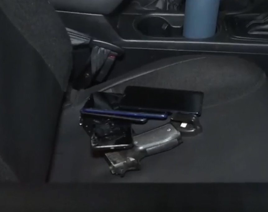 Um dos ocupantes do carro conseguiu fugir por uma área de mata, e o outro foi preso. No carro foram encontrados diversos celulares, capacetes, e um simulacro de arma de fogo. Uma mulher reconheceu o veículo como sendo de homens que estavam fazendo arrastões na área.