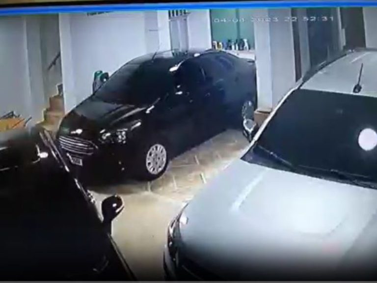 As imagens das câmeras de segurança mostram o momento que as vítimas estavam por volta das 22h conversando na frente da residência, quando uma picape branca, modelo Montana, com quatro criminosos armados, surpreendem a família. Veja: