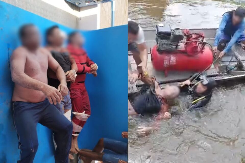 Um sobrevivente do acidente disse que o impacto no tronco gerou um rombo na draga, causando o afundamento das embarcações. Outras duas pessoas seguem desaparecidas.