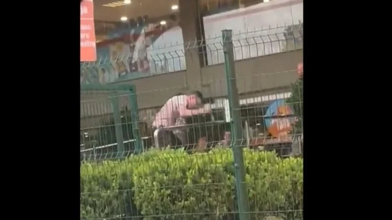 Imagens divulgadas nas redes sociais mostram o momento em que o homem usa uma faca para desferir diversos golpes contra o vendedor ambulante. Em seguida, ele sai e vai ao encontro da filha, que estava na calçada.