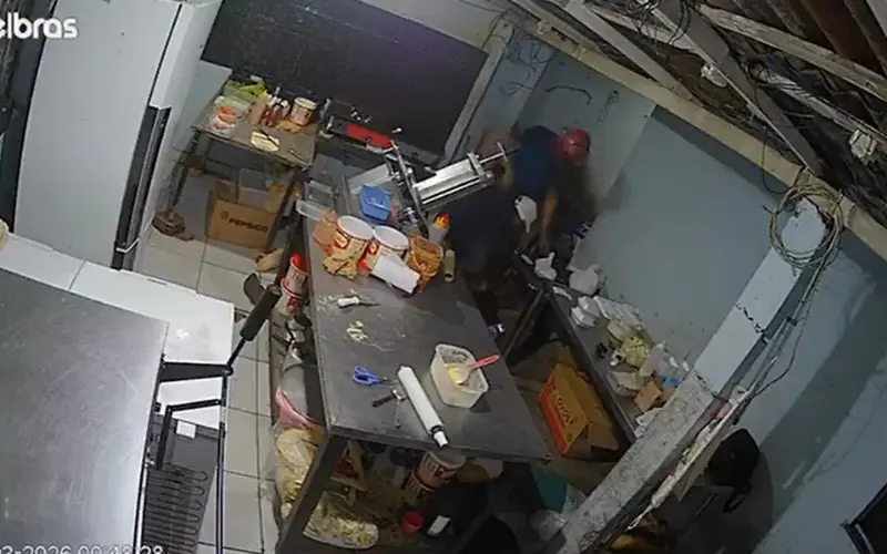 Câmeras de segurança registraram toda a ação. Nas imagens, a dupla aparece abordando o dono do estabelecimento de forma agressiva e exigindo dinheiro em espécie. No entanto, as vítimas informaram que o local opera apenas com pagamentos online.