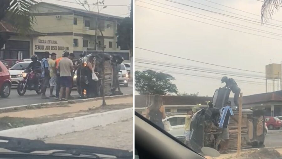 De acordo com a Polícia Militar, que prestou apoio à ocorrência, o veículo ficou tombado na via após o condutor perder o controle a alguns metros antes da faixa de pedestre.