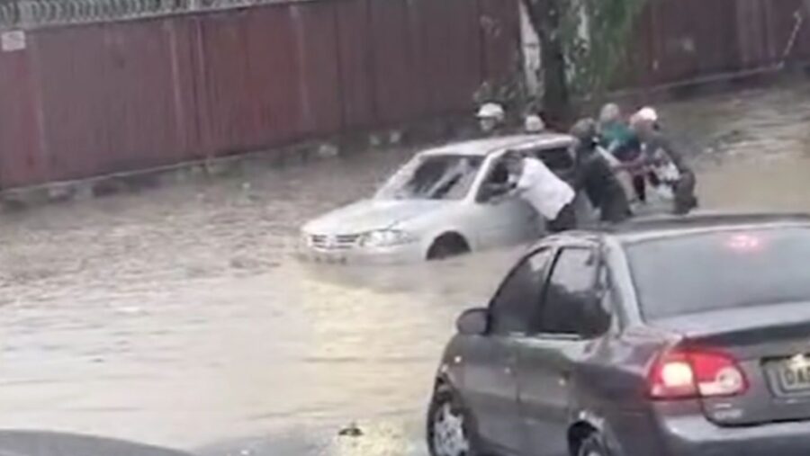 Vídeos feitos no local mostram o momento em que o motorista de um carro tenta salvar o veículo. Ele recebeu a ajuda de outras pessoas, que tentavam empurrar o veículo. Submerso, o automóvel chegou a flutuar na água. Ainda no vídeo feito por um condutor, ele pede que a área seja evitada.