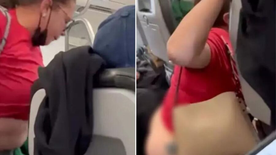 Veja o momento em que a mulher abaixa a calça no meio do voo