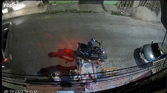 O fato aconteceu por volta das 19h44. Nas imagens, a dupla chega de capacete e em uma motocicleta, em seguida o criminoso aponta uma arma às vítimas e elas entregam os celulares. Dois aparelhos foram roubados.