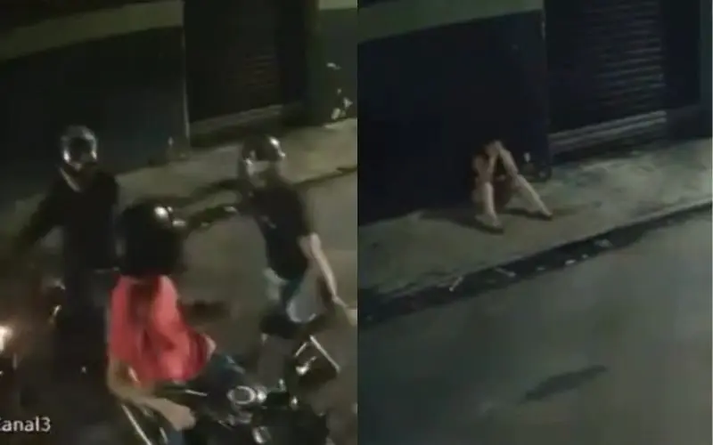 Um terceiro motociclista, que passava pelo local, diminuiu a velocidade para observar a situação, mas não há indícios de que tenha se envolvido na ação criminosa.