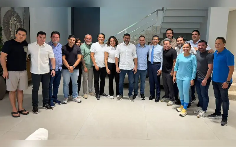 O ex-governador do Amazonas, Wilson Lima (União Brasil), reuniu parte de sua base aliada na manhã deste domingo (05), em sua residência, na zona centro-sul de Manaus. Ao lado do presidente da Assembleia Legislativa do Amazonas, Roberto Cidade, e do ex-vice-governador Tadeu de Souza, Lima demonstrou articulação e alinhamento político após deixar o cargo.